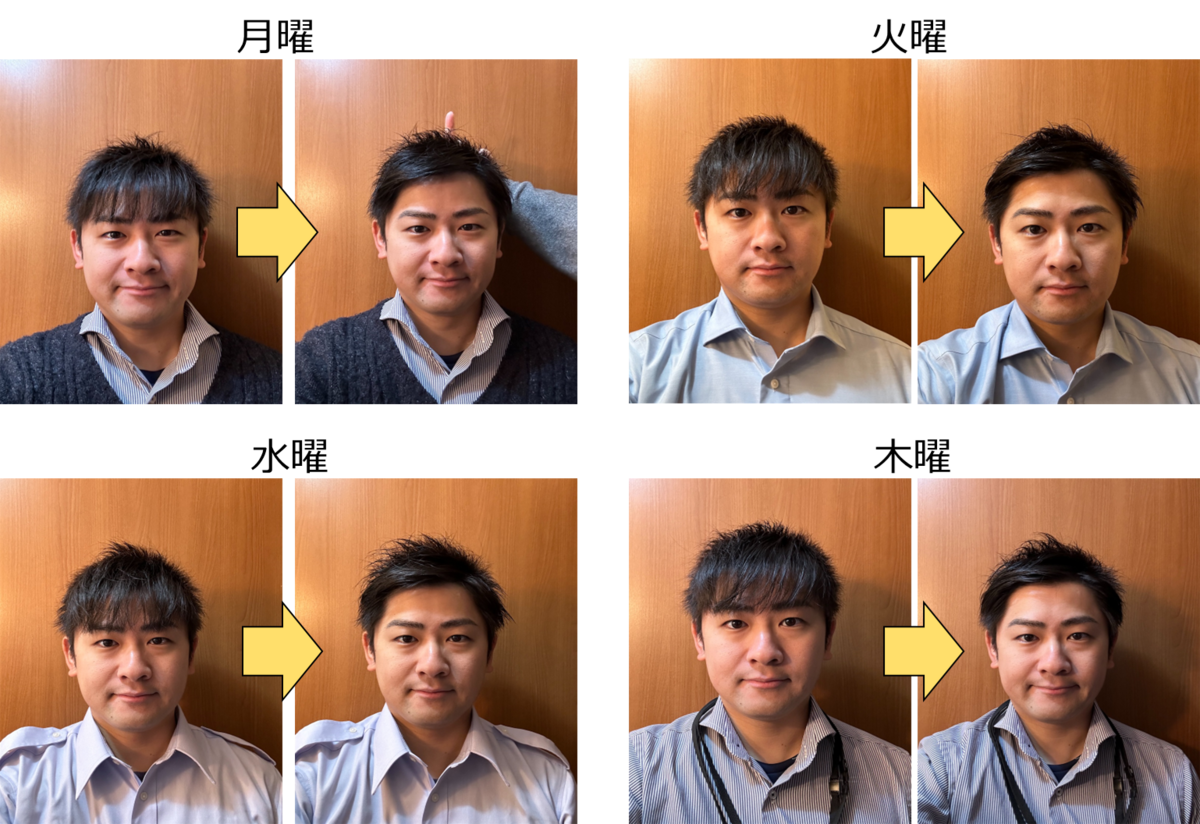 1週間ほど練習した後、毎朝のビフォーアフターを撮影してみました。